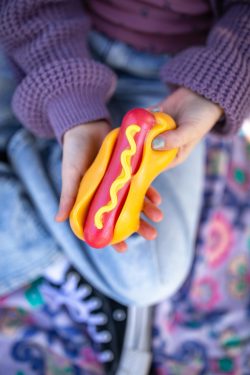 The debut patent-pending MushMeez line includes 6 scrumptious food-themed designs: Hot Dog, PB&J Sandwich, Hamburger, S’more, Cinnamon Bun and Donut! As good as these squishies look, don’t take a bite; this is a feast for the hands only! The material was carefully engineered by Beverly Hills Teddy Bear Co. to provide the best aspects of both slime and squishies. MushMeez bring the addictive tactile properties of slime with none of the mess, all contained within a perfectly squishy and stretchy object. The satisfyingly sticky texture may leave you worried that it will eventually attract dust and fade over time but worry not. MushMeez are super easy to clean! Some warm water and a little bit of soap is all you need to get your MushMeez back to brand-new condition!