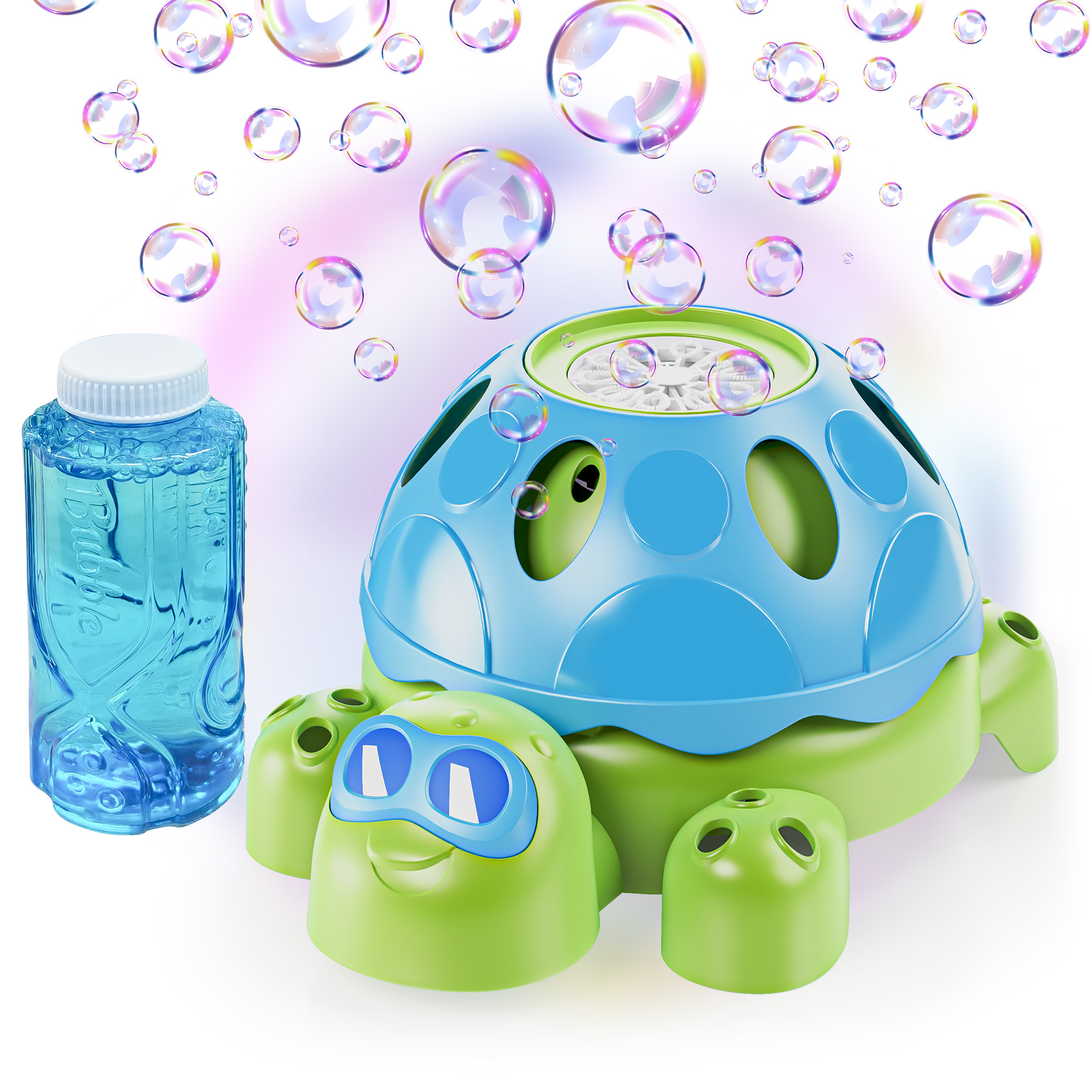 This delightful Turtle Shaped outdoor Nogoal 2-in-1 Bubble & Splash Fun Children’s Sprinkler Toy with bubble machine provides kids with an unforgettable playtime experience, providing simultaneous water spraying and bubble generation. Four rotating water outlets spray water in all directions while creating beautiful playtime bubbles to provide an exhilarating play session experience.
