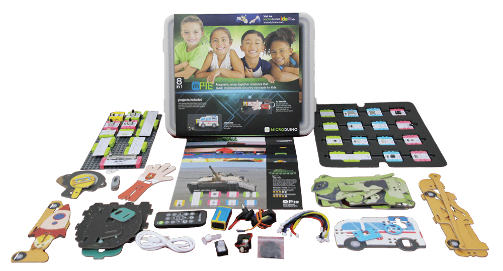 Designed for children ages 7 and up, mPie builds upon mPuzzle’s foundational circuity lessons and hardware components to teach kids introductory hardware coding and more advanced electronic and product design concepts. With mPie, kids discover the world of hardware coding, which helps them visualize the logical and sequential order of things in a physical and engaging way.