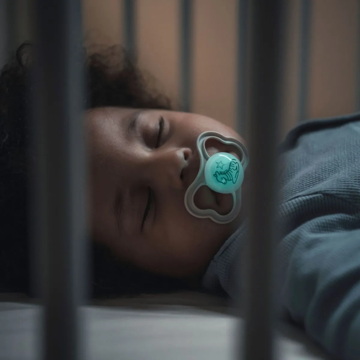 The MAM Air Night Pacifier combines thoughtful design with baby-safe innovation. Perfect for sensitive skin, it features large air holes for breathability and glows in the dark for easy nighttime use. Its BPA-free SkinSoft silicone nipple supports healthy oral development, and the self-sterilizing case offers convenience on the go. With 94% baby acceptance, it’s a trusted favorite for parents seeking comfort, safety, and sleep-friendly solutions in one adorable pacifier.