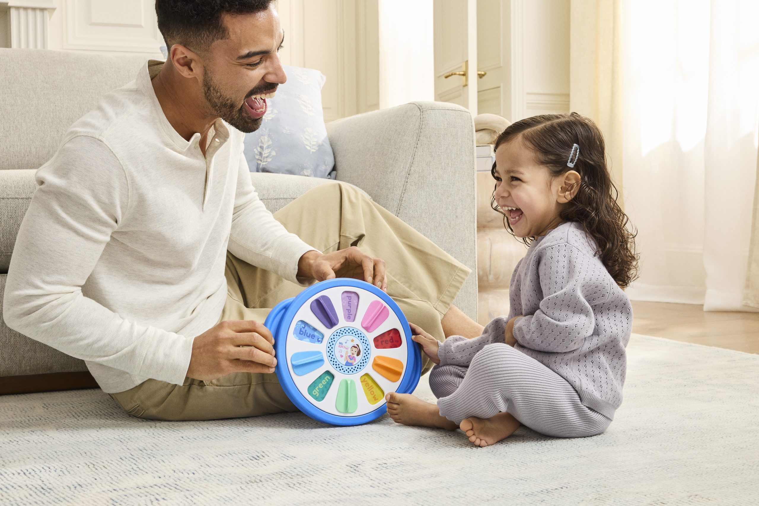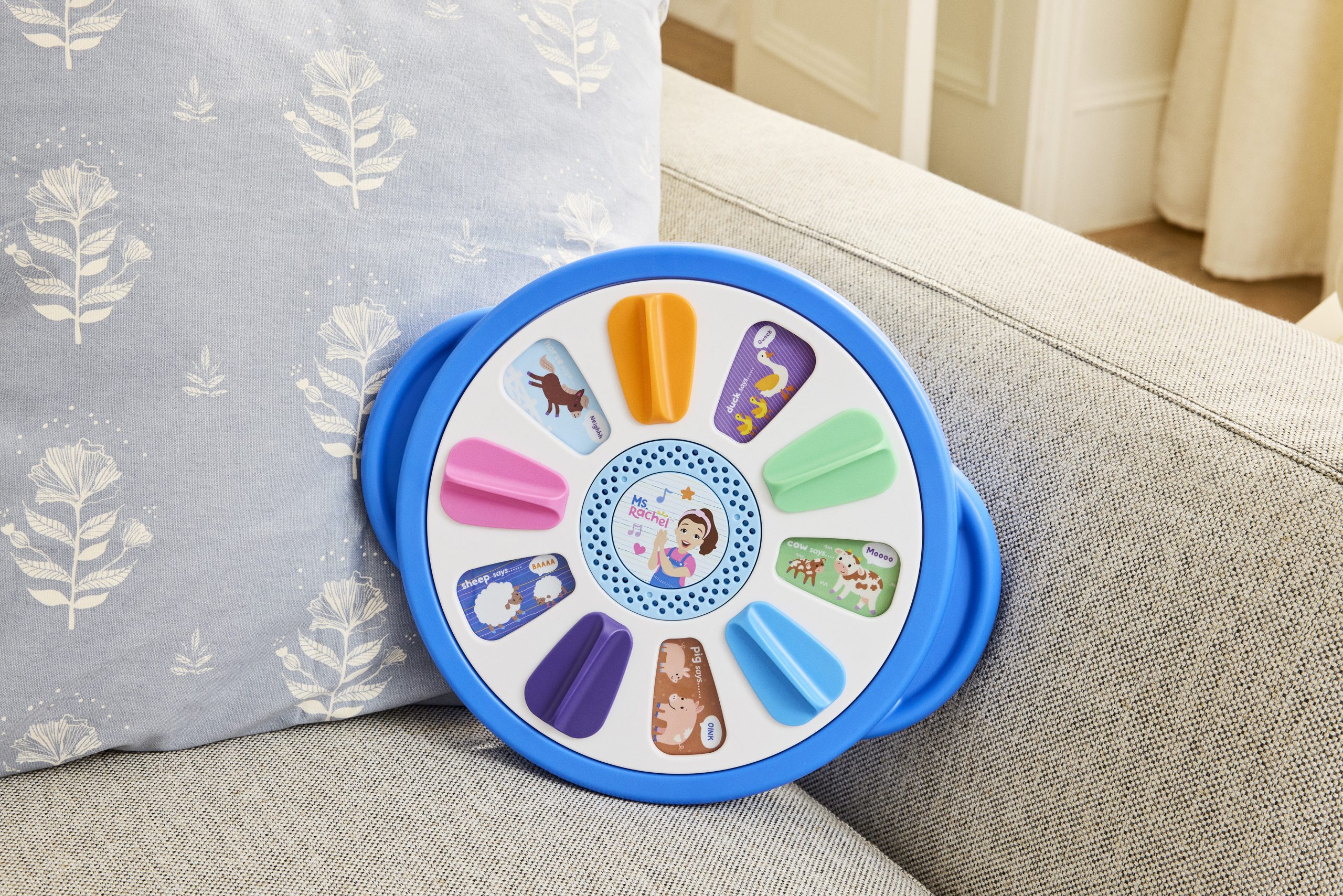 Suggested Retail: $32.99 For Ages: Ages 1-3 https://www.amazon.com/Ms-Rachel-6074733-SpinAndSing-LrningWheel/dp/B0DSCKY1VL?ref_=ast_sto_dp instagram.com/spinmaster facebook.com/spinmaster twitter.com/spinmaster
