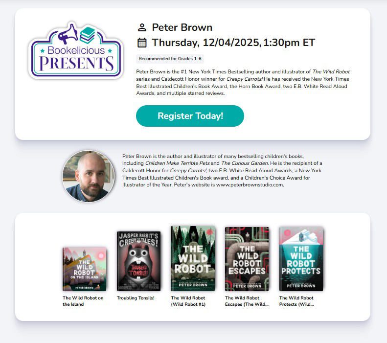 Bookelicious Presents brings beloved authors to classrooms, homeschools, and beyond through live virtual events. Kids get to hear directly from the authors they love, ask questions, and dive deeper into the stories that spark their imagination. Each event includes a hardcover book and activity guide, making it a fun, easy way to keep kids engaged in reading—whether you’re in a traditional school, learning at home, or just looking to inspire a young reader.