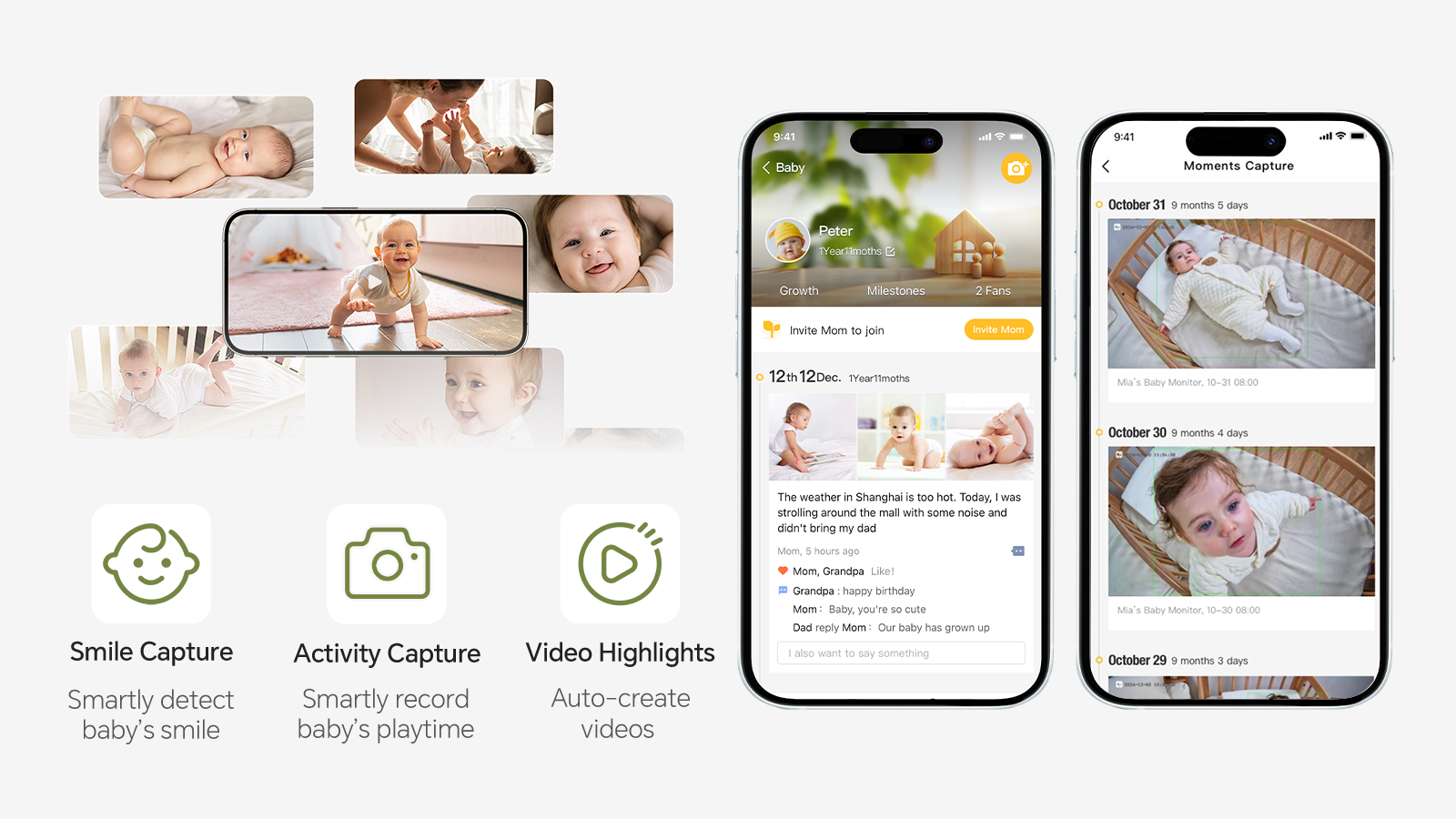 Many baby monitors are intrusive, ugly, or just record footage. Monai protects privacy with on-device AI, features award-winning bird-inspired design, and auto-creates beautiful milestone videos—turning worry into wonder and moments into cherished memories.