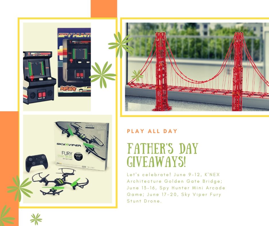 We have a very special Father’s Day Giveaway — 3 giveaways leading up to the day we celebrate dad! And we have great outdoor toys and an easy way to make no-churn ice cream!