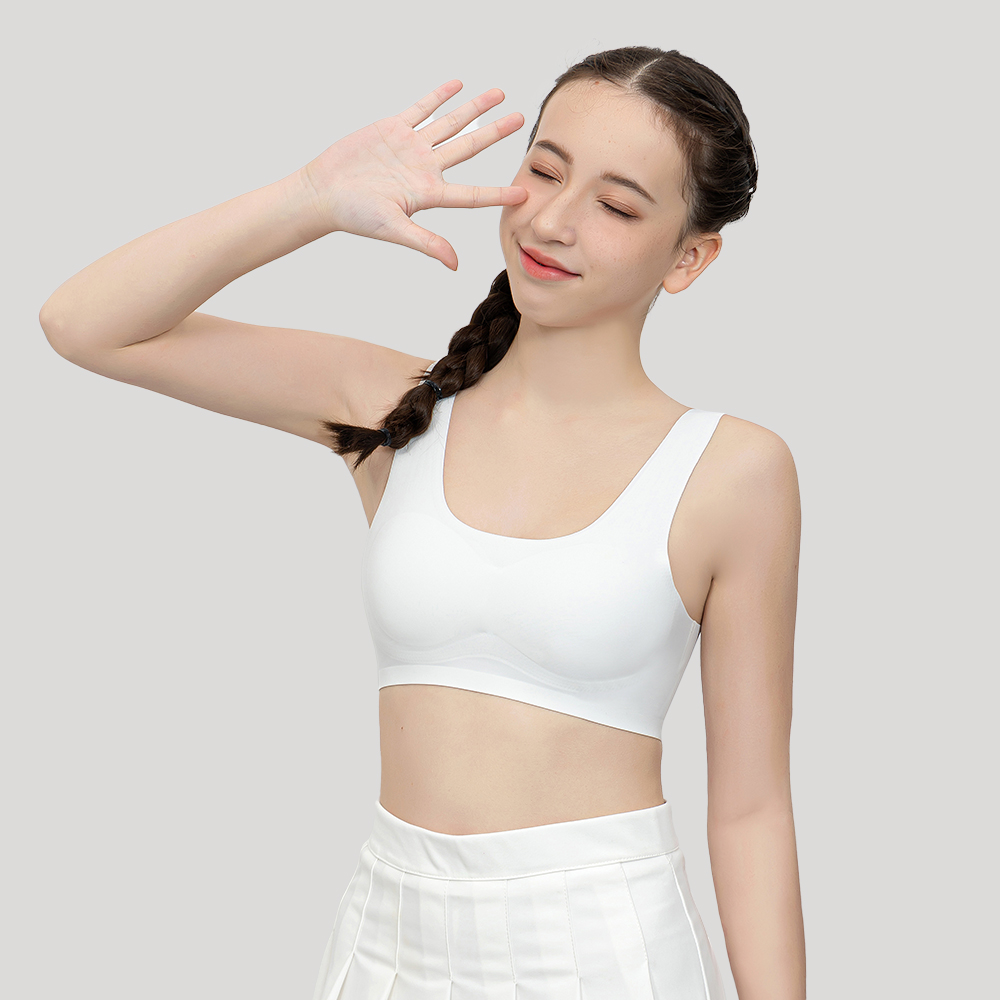 Designed for girls aged 10–16, the SALIA GIRL Training Bra offers seamless, wire‑free comfort ideal for growing bodies. Soft, breathable nylon‑spandex fabric with moisture‑wicking keeps skin cool and dry. Removable one‑piece foam pads provide light coverage and modesty. Wide straps and a U‑shaped back ensure a secure, pressure‑free fit. Considerate design and sensory‑friendly, it’s perfect for everyday wear, maintaining shape and color through washes. A thoughtful choice for teen girls transitioning to bras.