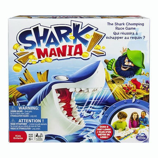 It’s a shark-chomping race with no time to waste! In Shark Mania, your pirate ship has run aground on treacherous Shark Island and your gold booty is overboard. You’ve got to get yourself to the island safely while collecting as many gold coins as you can along the way. But don’t get caught by that shark nipping at your heels. or you’ll be out of the game! The winner is the pirate who has collected the most gold coins AND makes it all the way to the safety of the island without getting chomped by the hungry shark. Bring home the frantic fun of Shark Mania, today!