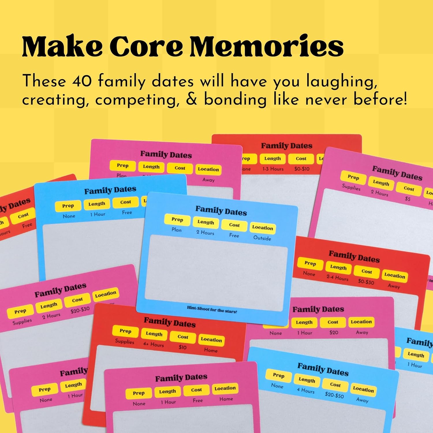 Family Dates includes 40 scratch-off dates to spark family fun! With dates ranging from laser heists to family trivia, your family will be laughing, creating, competing, and bonding like never before. Each date is a surprise and is thoughtfully designed to get your family off their devices to spend quality family time together. Packed with fun that is perfect for kids of all ages and includes plenty of free date options.