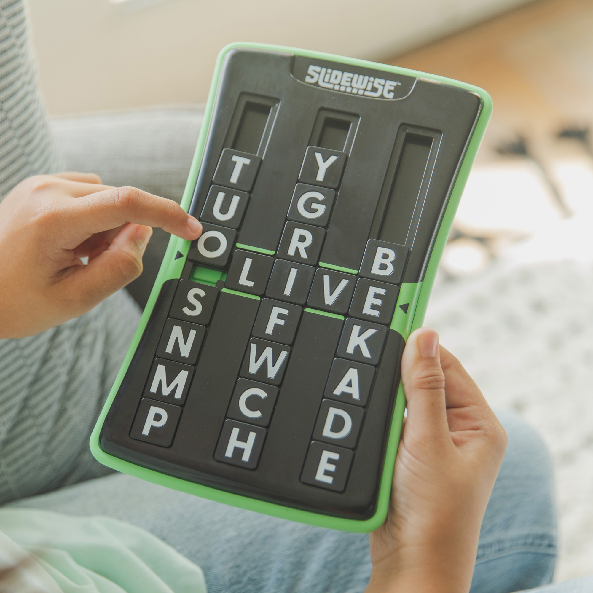 Slide, spell, solve with Slidewise™! Choose a five-letter word, slide the tiles to spell it, and solve the challenge—with over 1,000 possible word combinations, this brainteaser provides hours of entertainment. Tackle one of the 500 included challenge words for brain-boosting gameplay that sharpens problem-solving and spatial reasoning skills. Solve in as few moves as possible for an extra challenge! Satisfying sliding tiles make it a perfect fidget-friendly, travel-ready game for on-the-go fun.