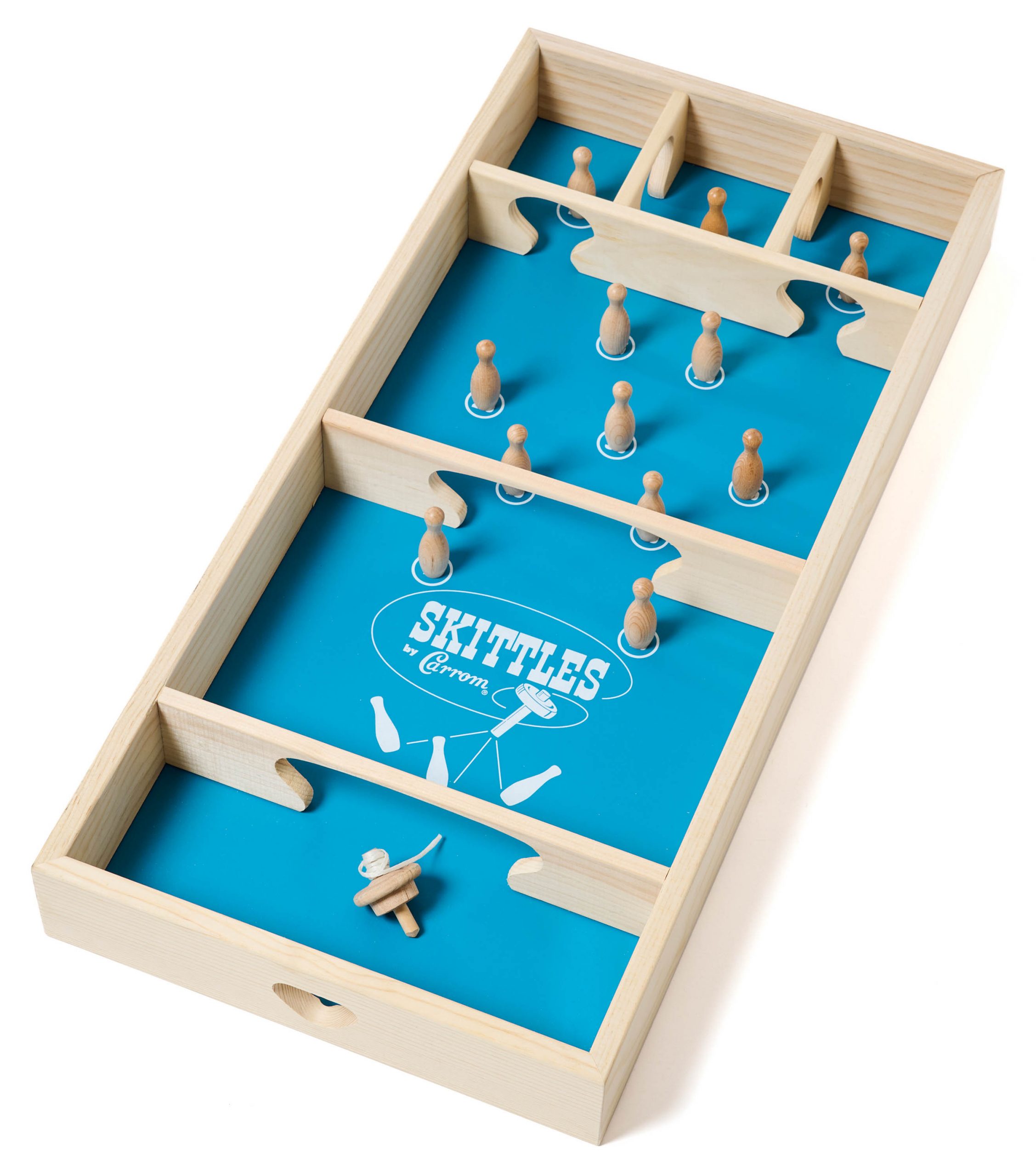 Wind the top, set it loose, and knock ‘em down. Skittles is like bowling but with a twist–literally. This Tabletop Skittles game of wooden pins and spinning tops dates back centuries to Old England. Now it’s transformed from a European classic to have an American accent as a tabletop board game. Opponents take turns spinning the top and knocking down pins for points. Skittles is a zany, pulse-pounding good time for all. Dare we say give it a spin?