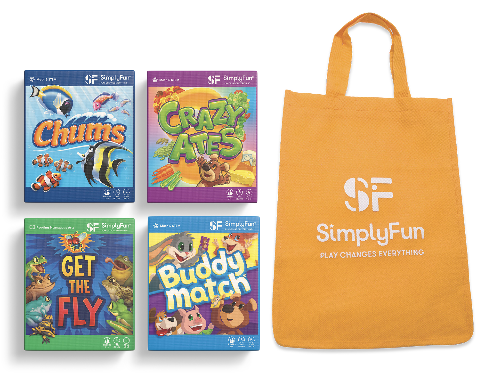“My girls enjoy the vibrant graphics and exciting gameplay. I love the opportunity for imaginative play and the introduction of game rules. The colorful images on the cards spark the girls creativity and create an opportunity for storytelling along with the game play. Also, the compact size of the games and the included tote bag make them perfect for taking along to restaurants or on trips.”
