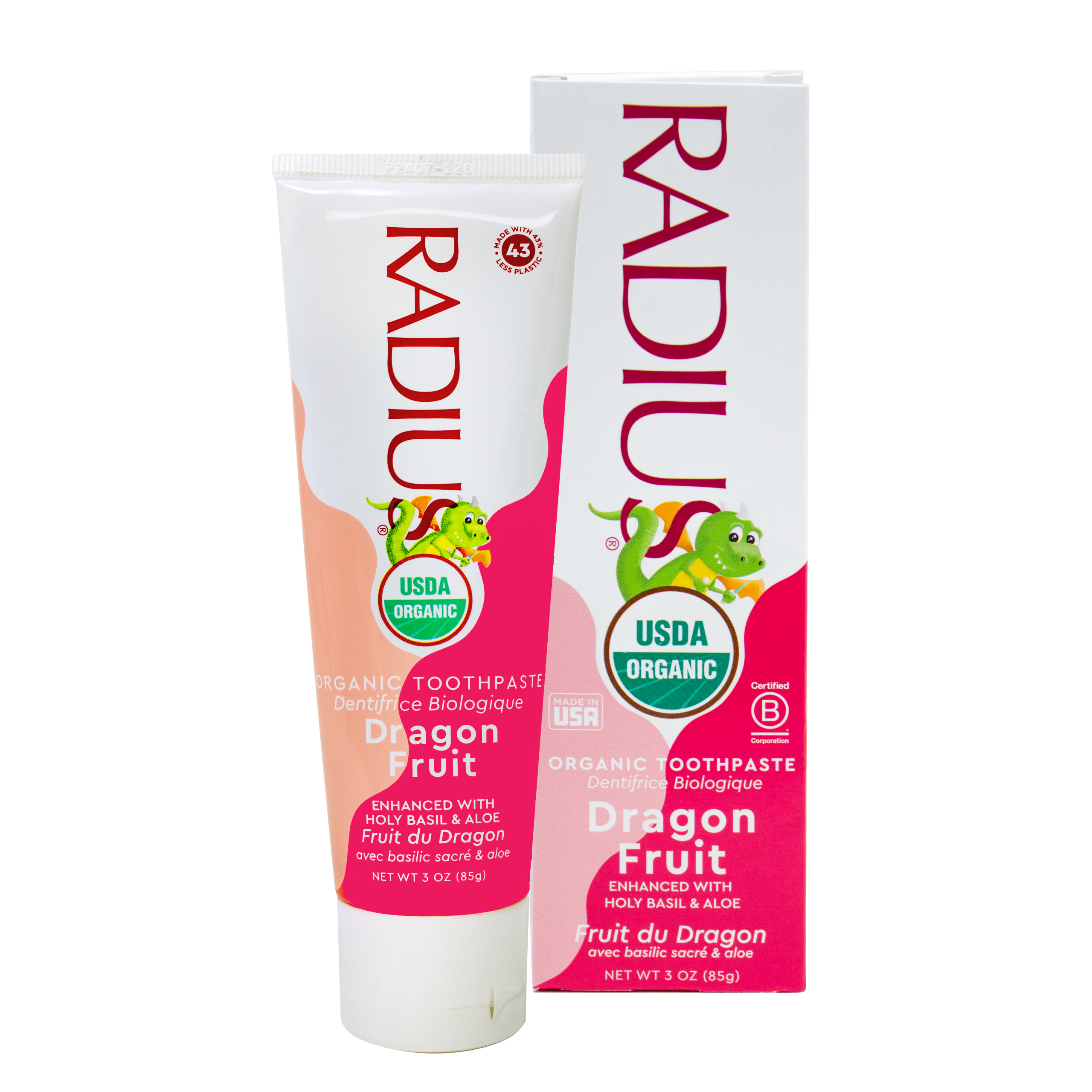 Nurture healthy oral care habits with RADIUS USDA Organic Children’s Dragon Fruit Toothpaste — a safe and effective choice for young smiles. Formulated with certified organic ingredients and entirely free from fluoride, GMOs, parabens, SLS, and synthetic additives, it provides gentle yet thorough cleaning. Enriched with holy basil, neem, and rosehip extracts, this cruelty-free, Leaping Bunny Certified toothpaste supports gum health, polishes teeth naturally, and offers a refreshing dragon fruit flavor children love.